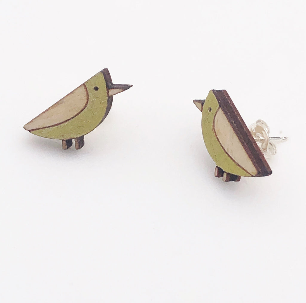 Birketræ malet og lakeret. 10 mm lang allergivenlig ørestikker af 925 Sterling Sølv med runde ender for ekstra komfort. Produktet overholder EU's nikkeldirektiv.