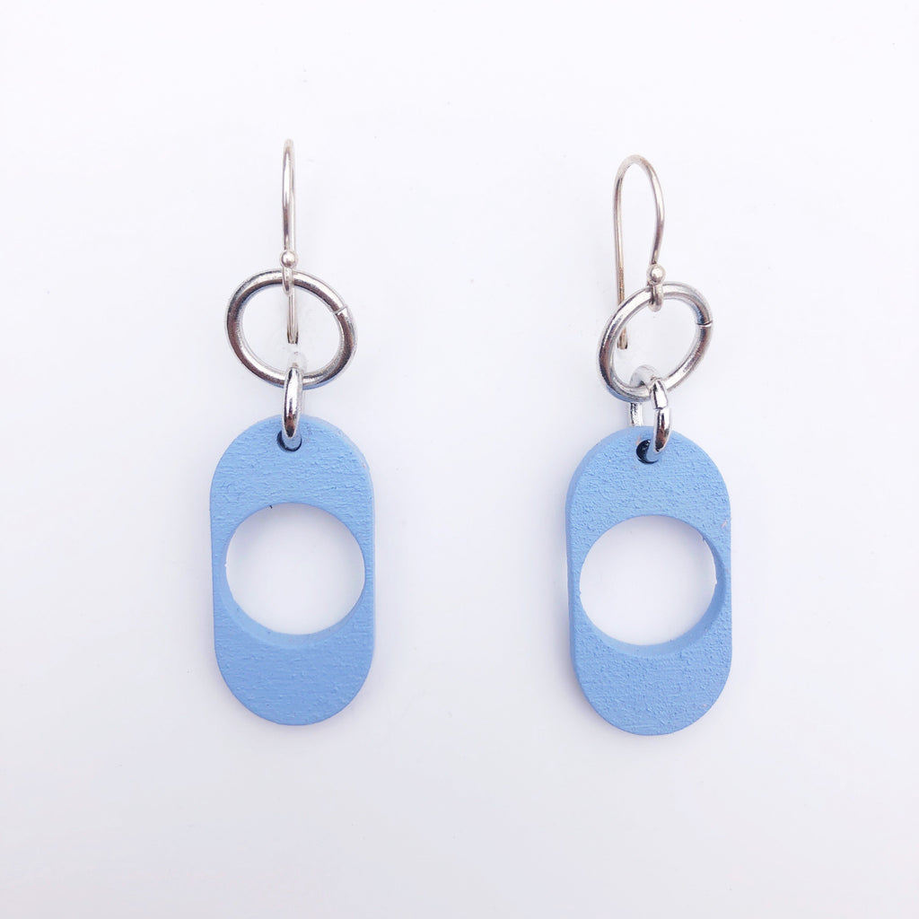 Sculptural birch wood earring with nickel free metal jump rings. Painted with non-toxic acrylic paint and coated with a non-toxic varnish. Ear wire is Hypoallergenic 925 Sterling silver and EU Nickel Directive compliant.