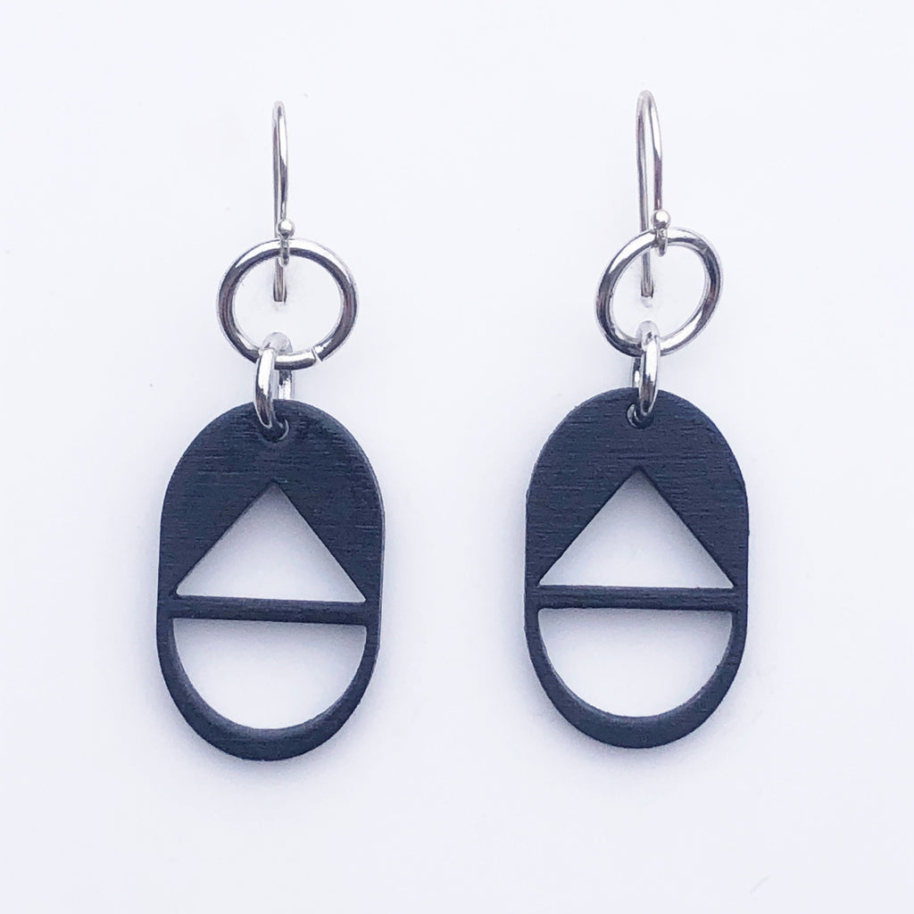 Sculptural birch wood earring with nickel free metal jump rings. Painted with non-toxic acrylic paint and coated with a non-toxic varnish. Ear wire is Hypoallergenic 925 Sterling silver and EU Nickel Directive compliant.